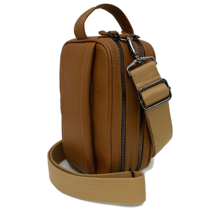 Bolso de mano y cruzable para hombre realizado en piel de ternera 100%. Ideal para un look informal o como cartera de negocios. Puede ser llevado en la mano, cruzada gracias a su asa para llevar todo con mayor comodidad o bajo el brazo. Su práctica jareta permite llevarlo en la mano con seguridad, o si lo prefieres se la puedes quitar. Tiene cierre exterior en la parte de atrás. Y doble cierre de este bolso es cremallera en la parte superior. Los herrajes de alta calidad no se oxidarán. Los ribetes son también de piel lo que garantiza calidad duradera de esta pieza sin que se dañe con el uso continuo. El interior cuenta con un organizador en uno de los lados, con dos divisiones y un espacio más para que puedas guardar billetes.