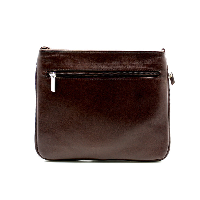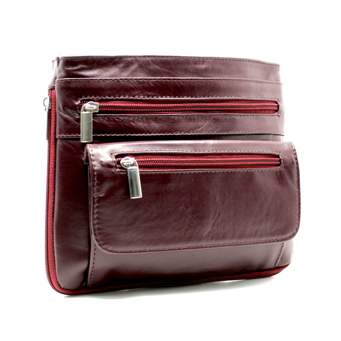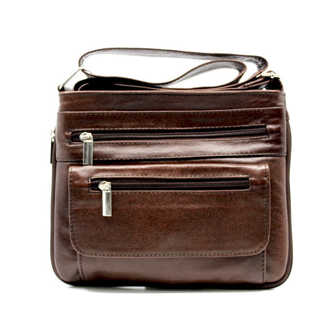 Bolso tipo cross body super práctico y versátil, expandible, realizado en piel de ternera 100%. Con correa de piel para usar al hombro o bien cruzado. Los compartimentos permiten organizar todas tus pertenencias en espacios amplios. En la parte exterior al frente tiene dos bolsas con cierre, además de una bolsa con broche de imán. La parte de atrás también tiene bolsa con cierre. El interior es forro textil y cuenta con una bolsita igual con su propio cierre. El cierre lateral del cuerpo del bolso permite que se expanda hasta 7 cms de ancho. Mide 25 cms de largo por 20 cms de alto. Pieza indispensable en tu outfit. No te la pierdas!