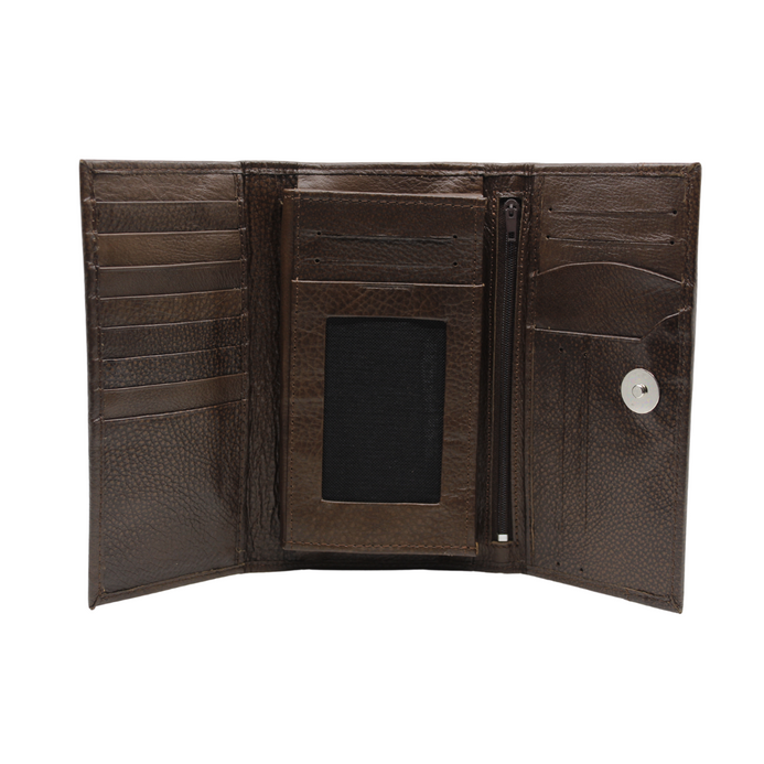 Pieza edición especial: un básico que no puede faltar en tus accesorios. La cartera modelo París está realizada en piel 100% tanto en su exterior como en su interior. Cuenta con 17 divisiones para tarjetas y/o identificaciones, así como 6 espacios para billetes o documentos, y un amplio compartimento con cierre para usar como monedero. La belleza de la piel genuina y la tradición de lo "hecho a mano" en una pieza especial que ofrece diferentes texturas y tonalidades que te encantarán. Mide 18 cms de largo, 10 cms de alto y hasta 3 cms de ancho