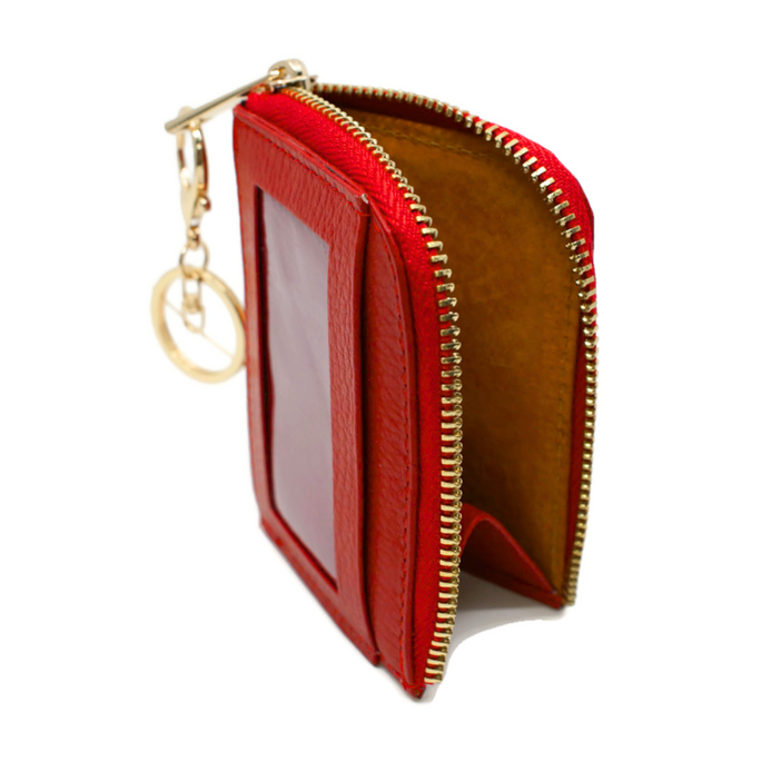 Cartera porta credencial en piel 100%, tanto en su exterior como en el interior; con división central. Sencillo, discreto y compacto. Mide 10.5 X 7.5 cms. Ideal para llevar hasta en el bolsillo de tu ropa, sea cual sea la prenda no se notará. Llavero integrado.