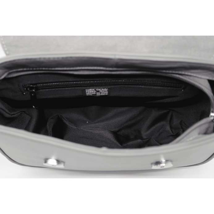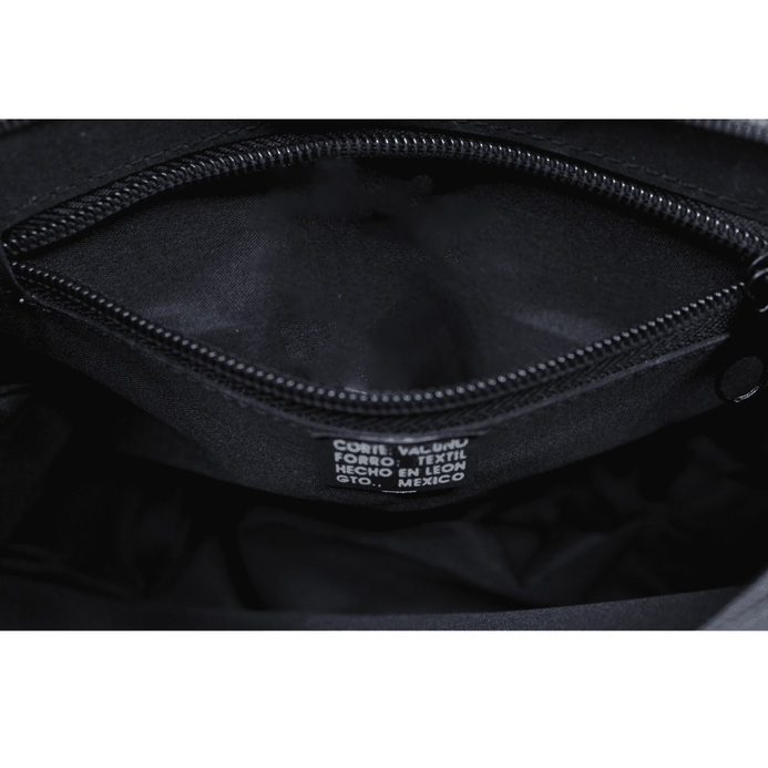Largo: 21 cms,alto 18 cms y ancho 8 cms. Forro textil y en su interior bosa con cierre.