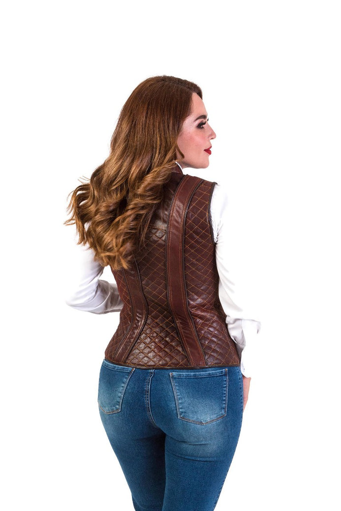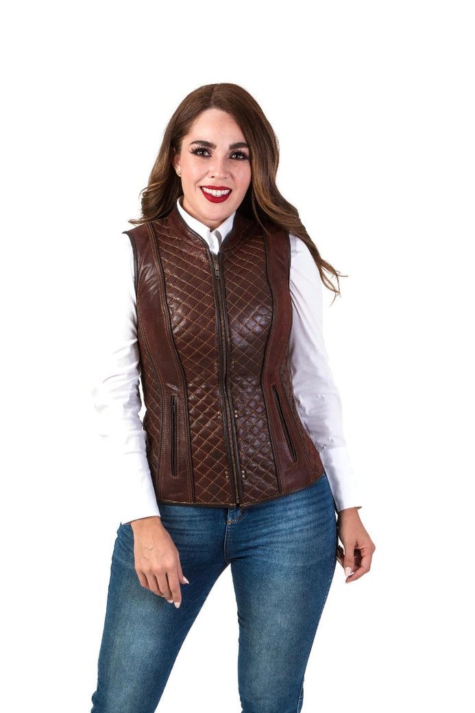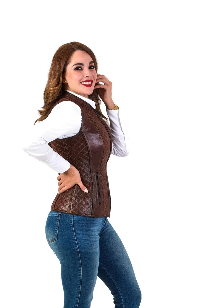 Chaleco para dama. Realizado en piel 100% de alta calidad. Color canela. Exclusivo corte con diseño profesional para realzar tu figura. Garantizado que lucirás increíble. El color es totalmente combinable con cualquiera otro y el corte te hará lucir espectacular con tu outlook casual o formal.