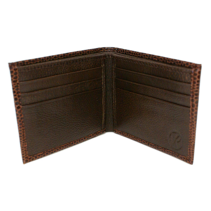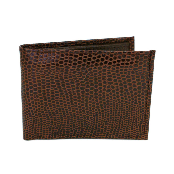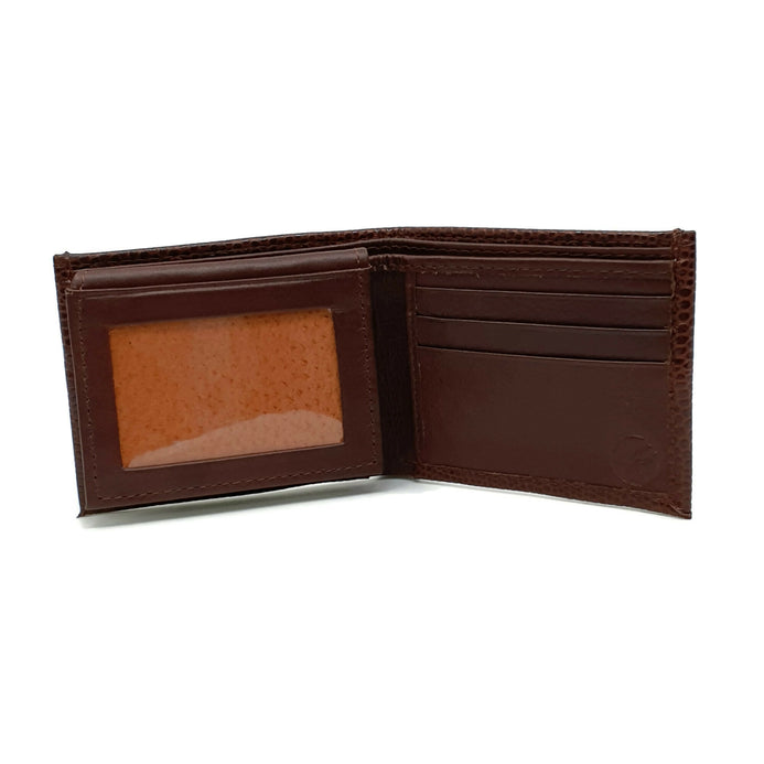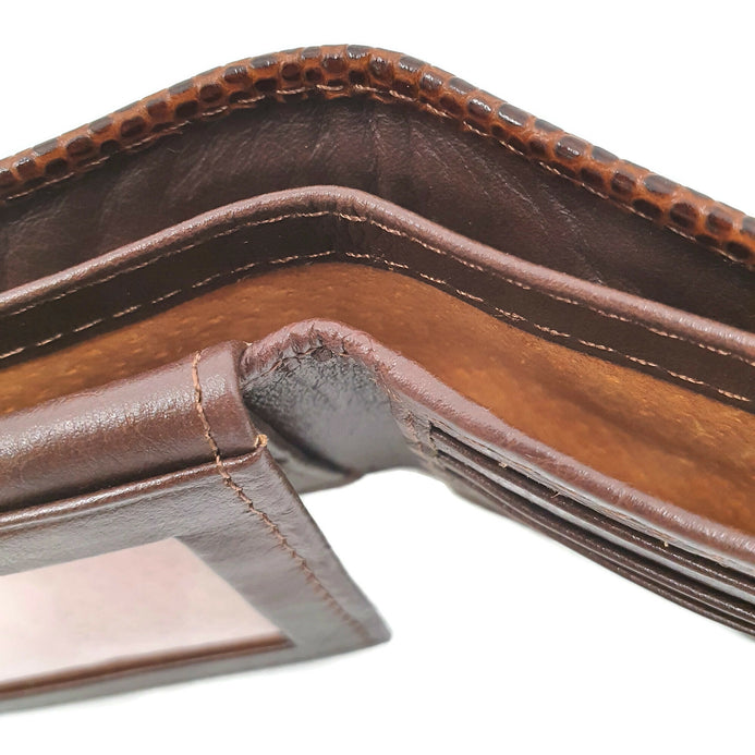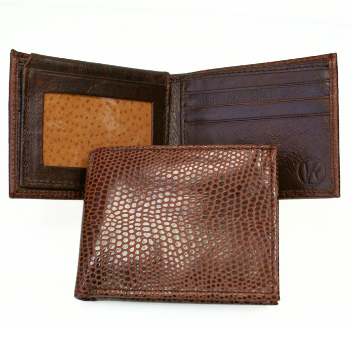 Realizada en fina piel grabada color café Edición limitada.   Elegante y práctico diseño con 10 divisiones para tarjetas y/o identificaciones, dos de ellas de ventana.  Más dos compartimentos para billetes o documentos y uno adicional oculto con solapa para proteger billetes de mayor denominación o documentos importantes.