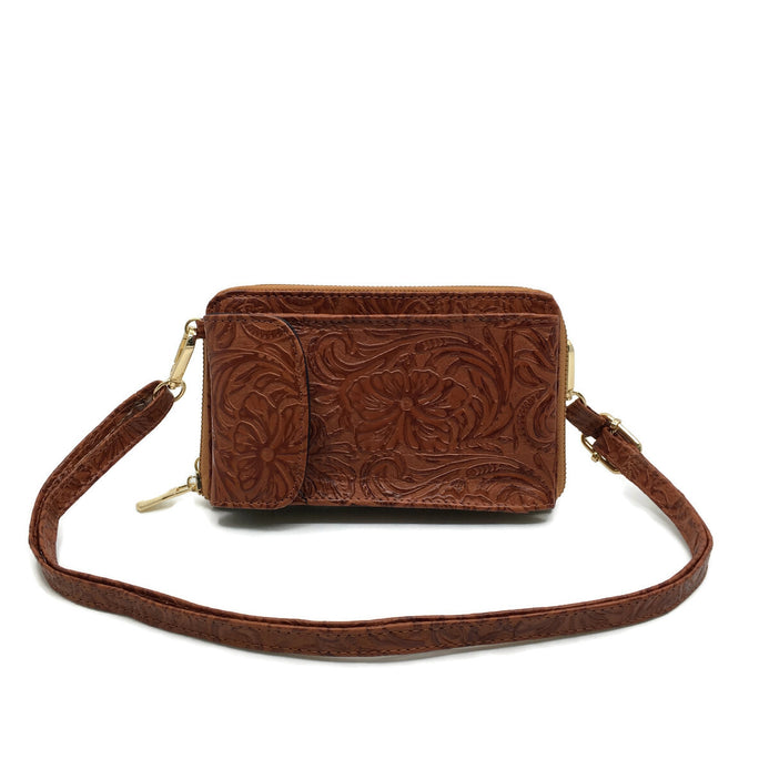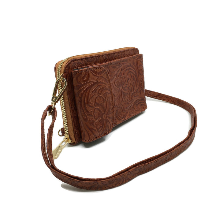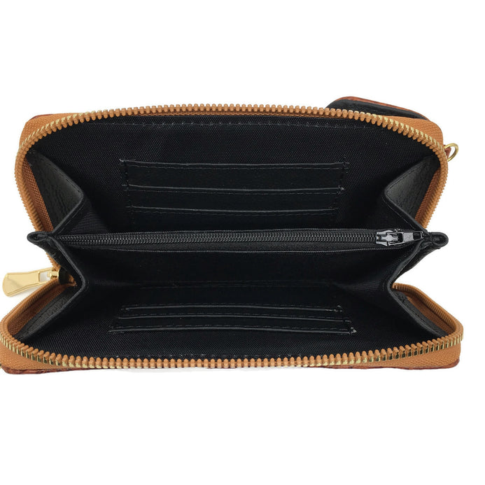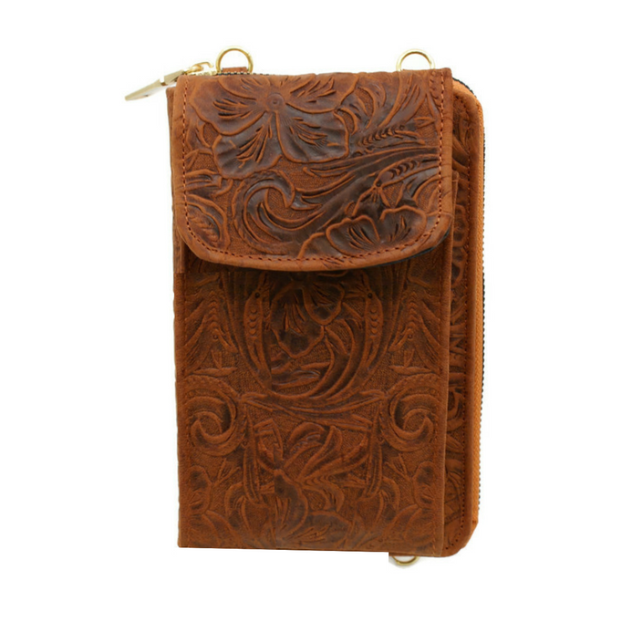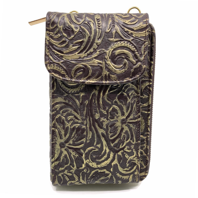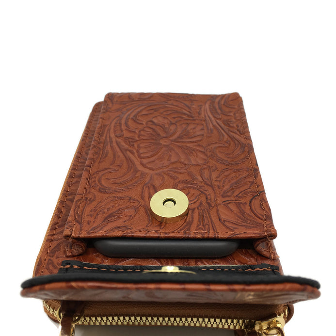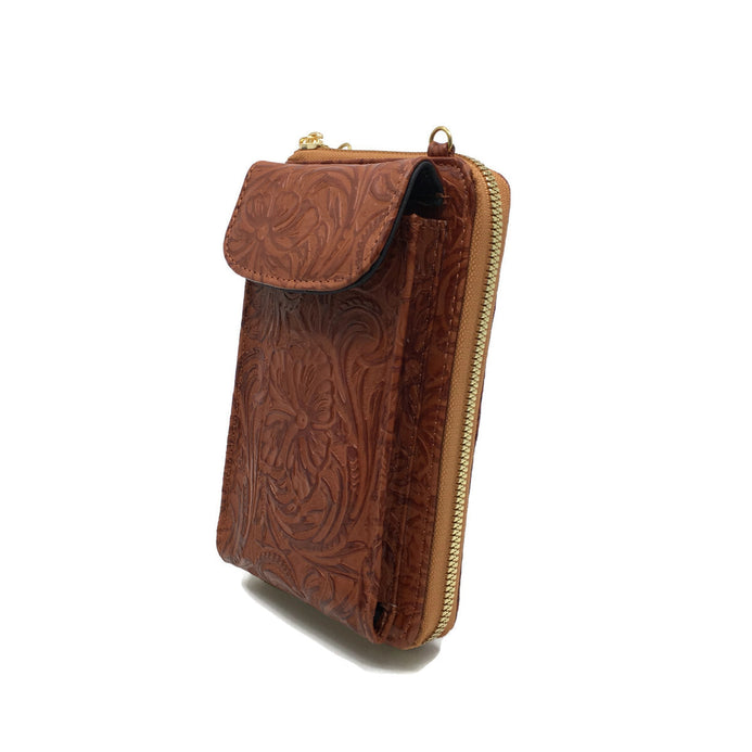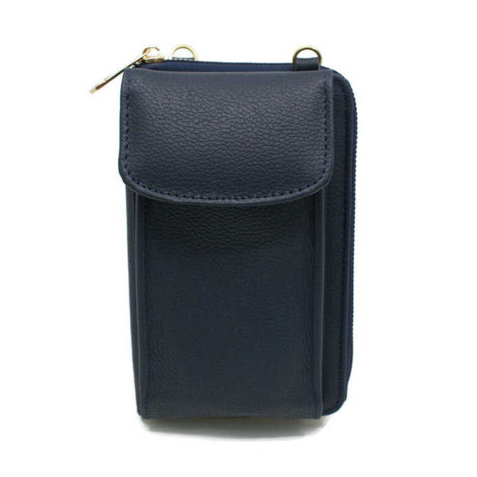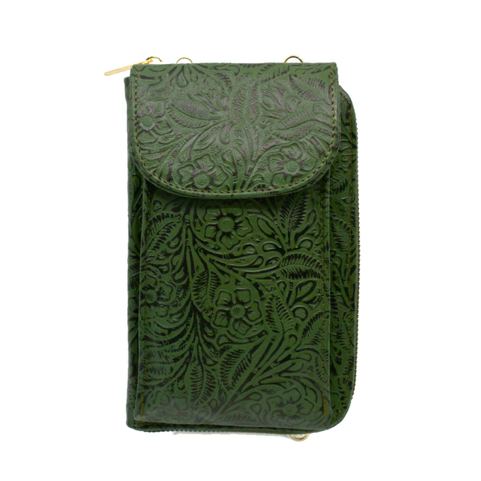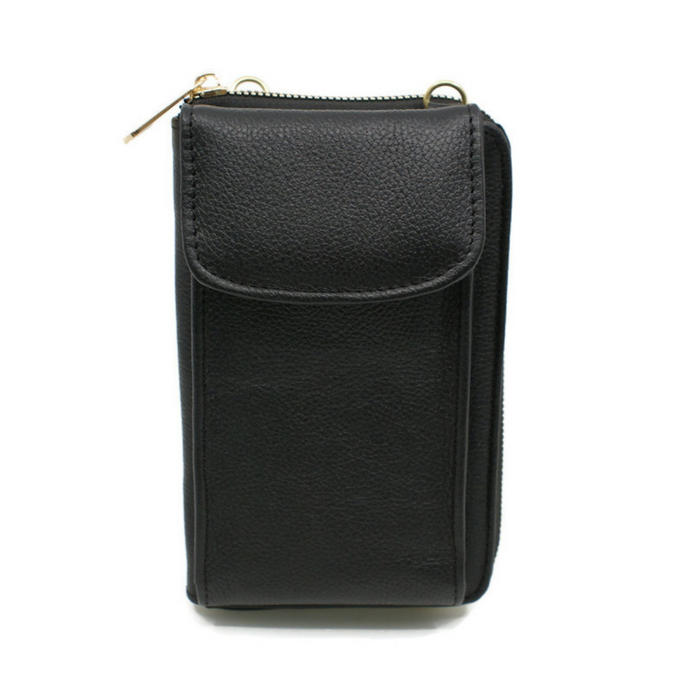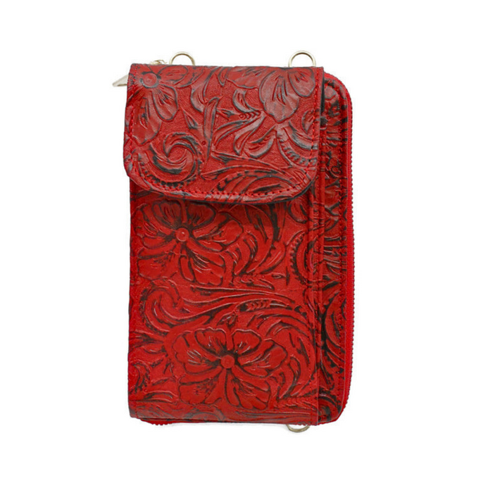 Portacelular y cartera realizada en piel floater y también en diferentes grabados. Diferentes y hermosas texturas. Atractivos colores.  Puede usarlse como cross body vertical u horizontal. Con cierre externo para total seguridad.  Al frente tiene el compartimento para el telefono.  En la cartera cuenta con 6 divisiones para tarjetas o identificaciones y 2 compartimentos ipara billetes o documentos con bolsa divisoria  con cierre. Su interior es amplio, practico y cómodo.