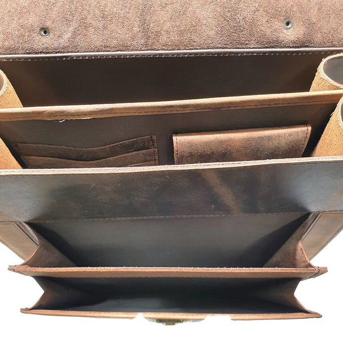 Back pack realizado 100% en piel. Excelente calidad y diseño! Para llevar tu lap, notebook y documentos varios. Con su correa y protector de hombro puedes llevarlo al hombro o cruzado también. Cuenta con amplia bolsa con cierre en la parte de atrás. Cierra con tres broches, dos magnéticos simulación de hebilla y el del centro tiene llave para tu seguridad. Su interior es forro de piel con dos divisiones principales, una de las cuales tiene tarjetero integrado más compartimento para cel o cartera según lo prefieras. Dos divisiones más al frente hacen de esta pieza una imperdible!