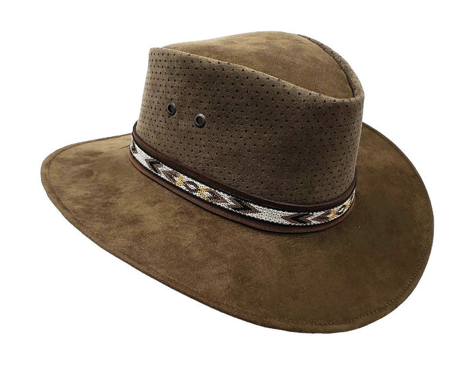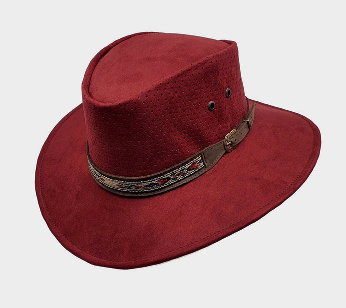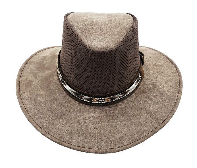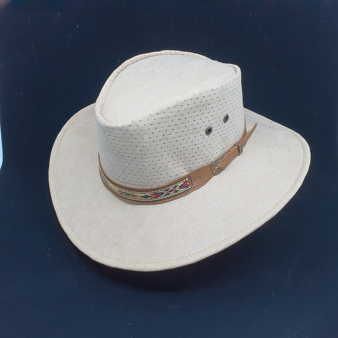 Sombrero estilo Australiano, tipo Indiana Jones, realizado en material textil tacto durazno. Genuino Valentina Rios. Un accesorio que complementa un look formal o casual para lucir increible!