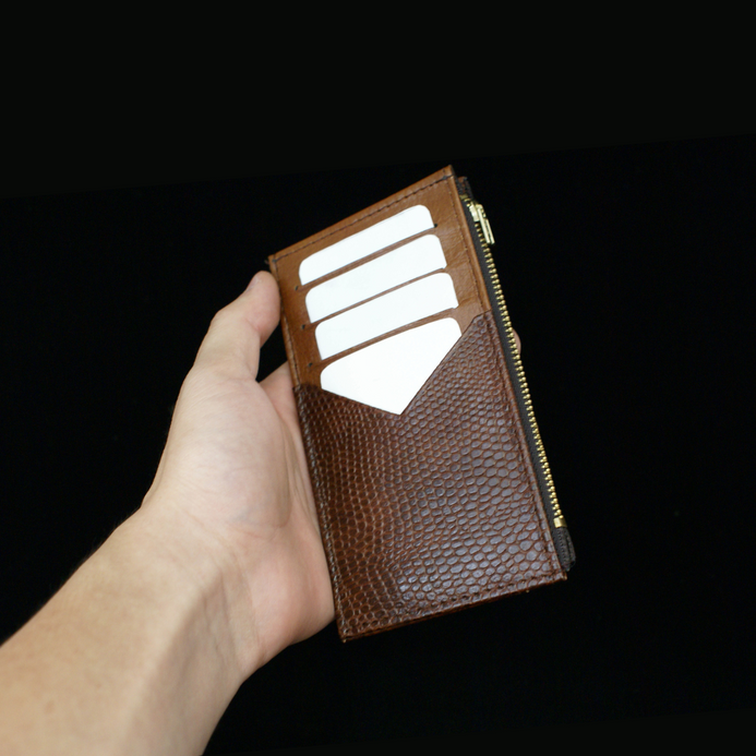 Tarjetero en piel 100%, tanto en su exterior como en el forro. Con divisiones para cuatro tarjetas, dos en cada lado, más la división central. Sencillo, discreto y delgado. Mide 14.5 X 8 cms. Ideal para llevar hasta en el bolsillo de tu ropa, sea cual sea la prenda no se notará.