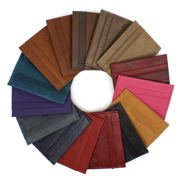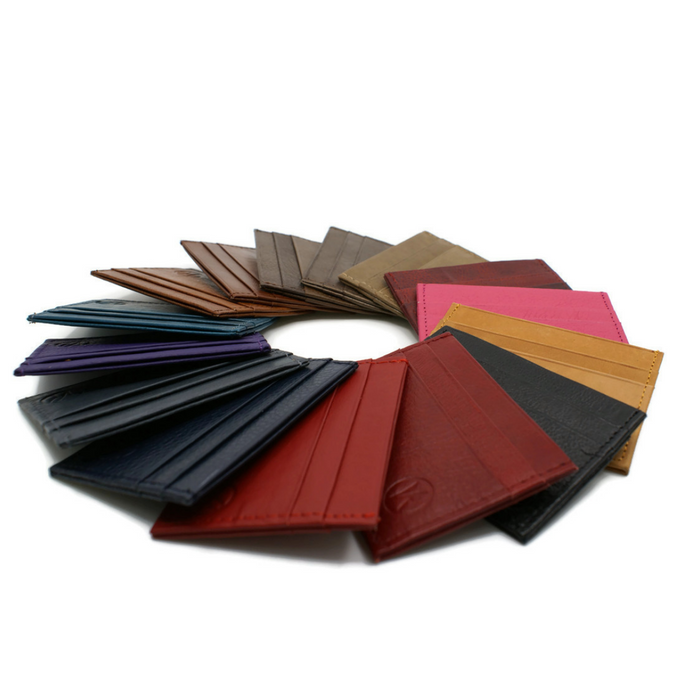Tarjetero en piel 100%, tanto en su exterior como en el forro. Con divisiones para cuatro tarjetas, dos en cada lado, más la división central. Sencillo, discreto y delgado. Mide 10.5 X 7.5 cms. Ideal para llevar hasta en el bolsillo de tu ropa, sea cual sea la prenda no se notará.